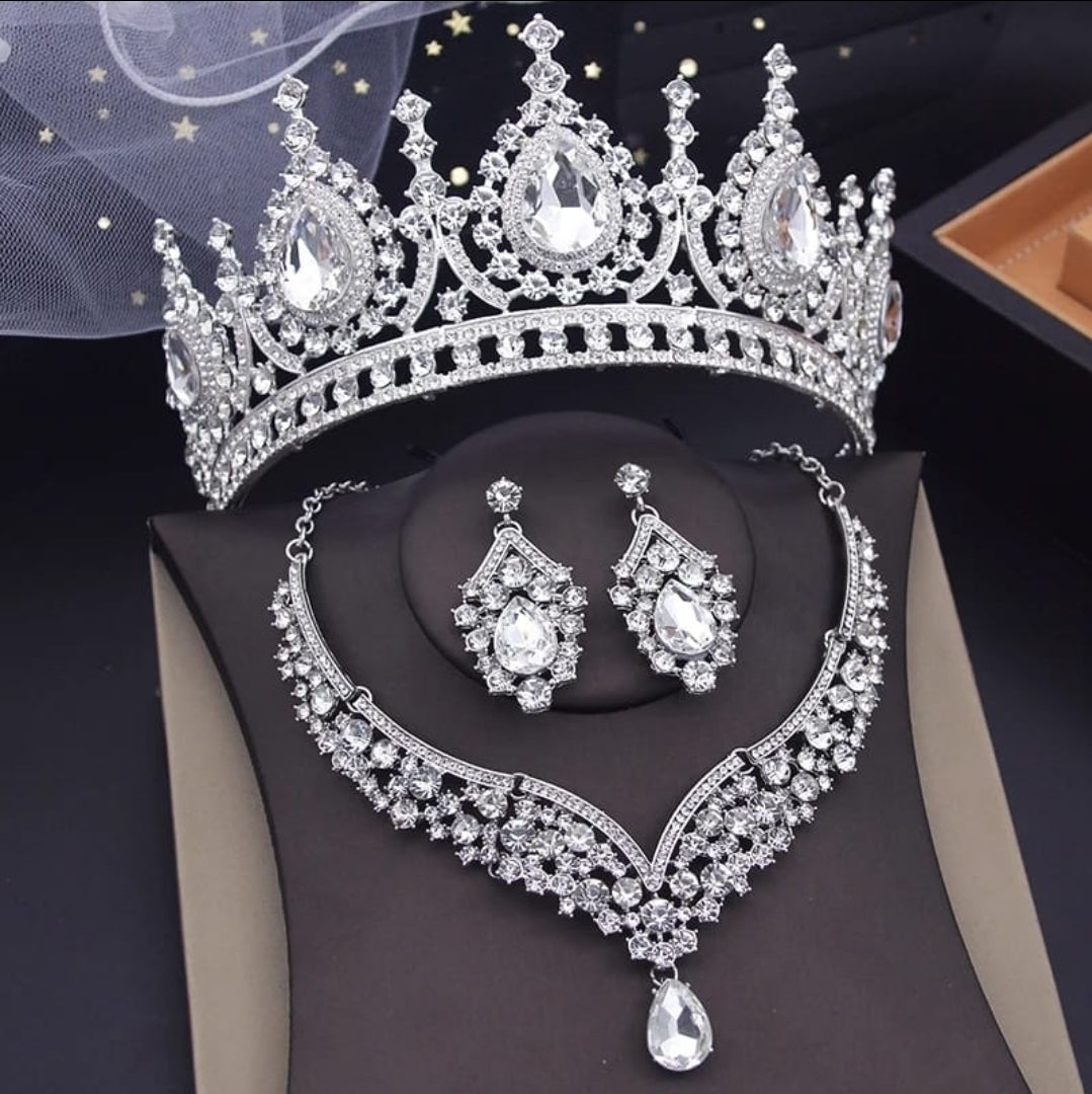 ¡El accesorio perfecto existe y viene en un set! Olvídate de buscar piezas sueltas que combinen. Nuestra colección de conjuntos de tiara, collar y aretes te ofrece un look pulido y perfectamente coordinado al instante. Simplemente elige tu diseño favorito y prepárate para brillar. Máxima elegancia con el mínimo esfuerzo.