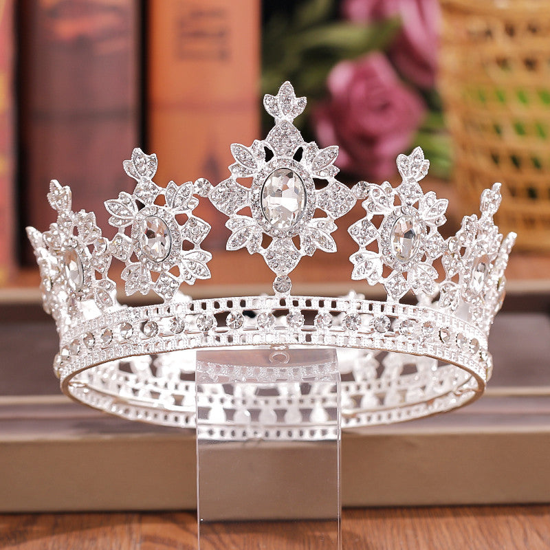 Coronad plateada en aleación de zinc con diamantes de cristal.