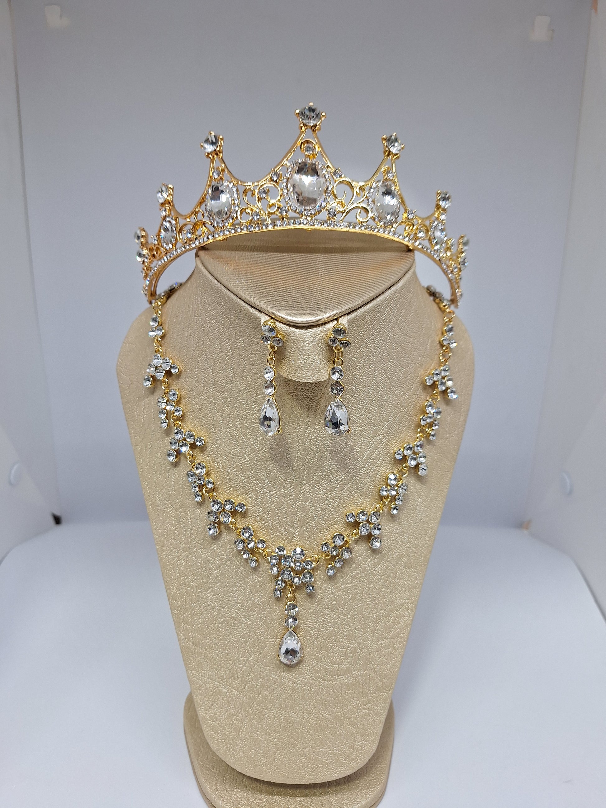 Joyería dorada en aleación de zinc con diamantes de cristal.