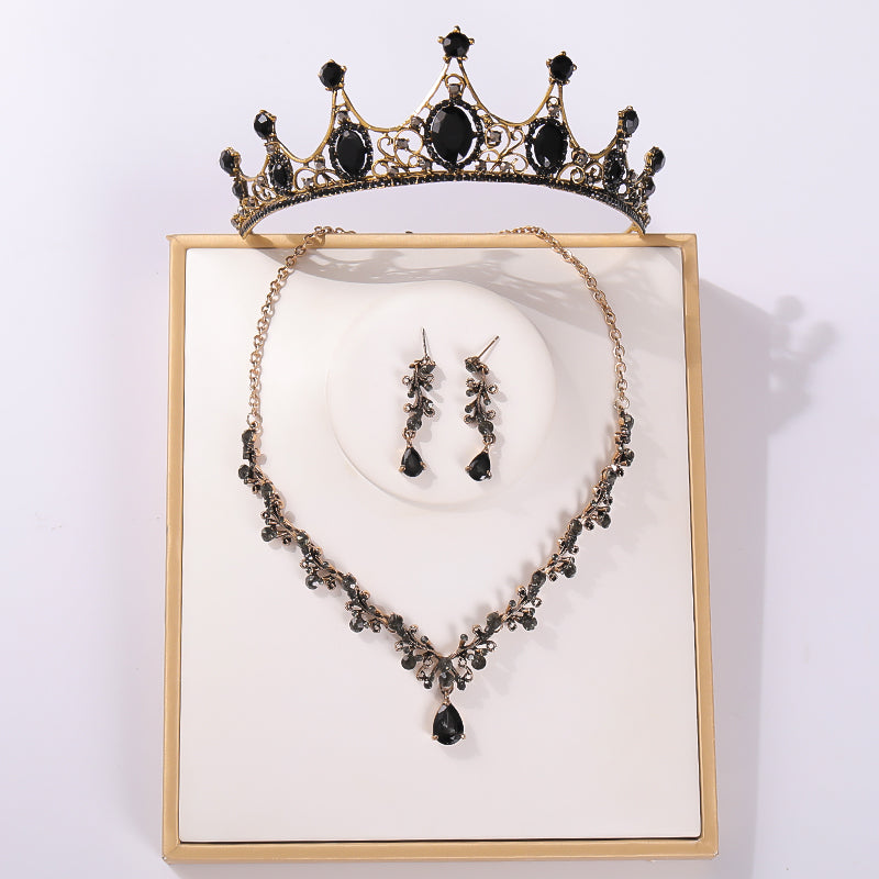 Conjunto dorado en aleación de zinc con diamantes de cristal negro.
