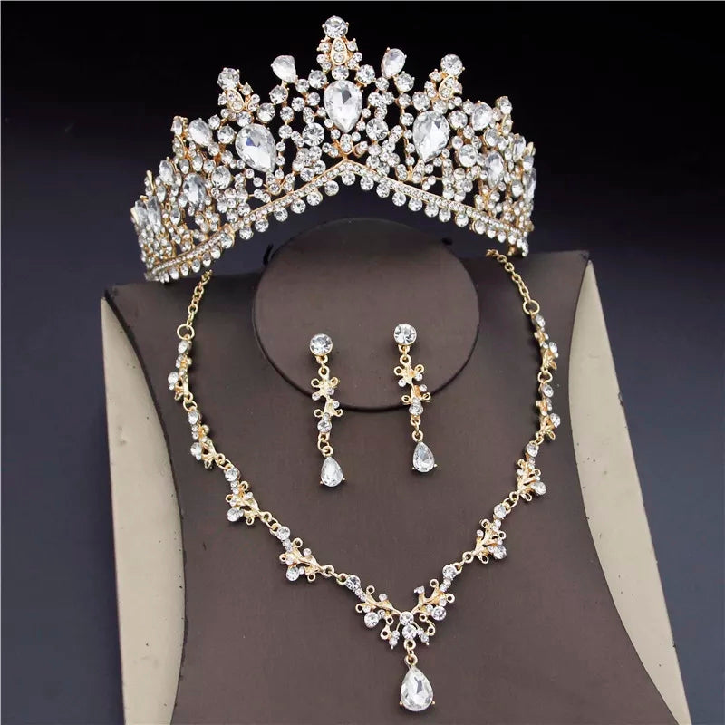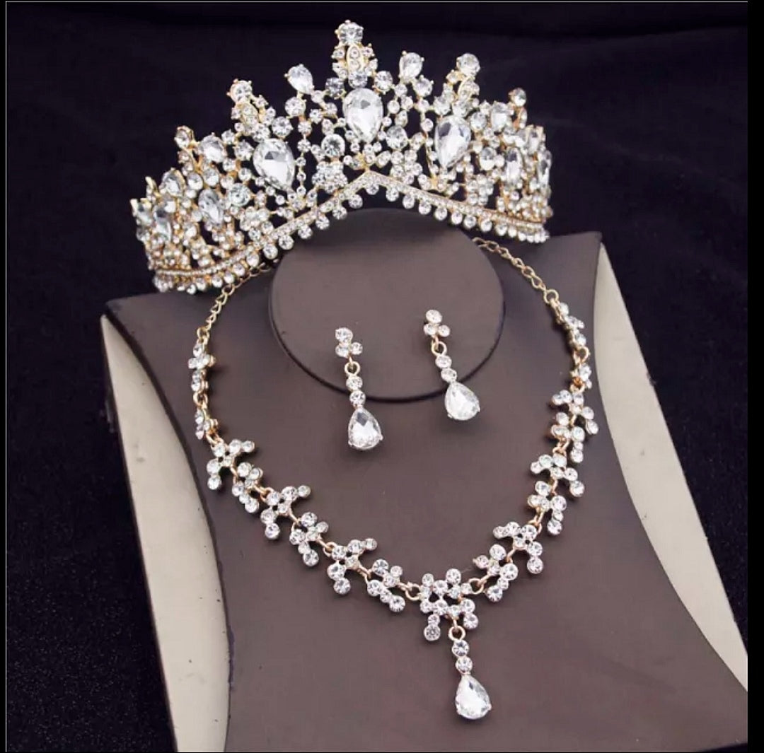 Joyería dorada en aleación de zinc con diamantes de cristal.