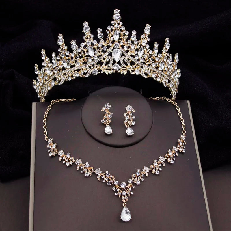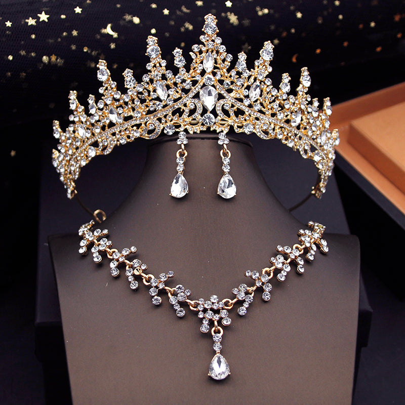 Joyería dorada en aleación de zinc con diamantes de cristal.