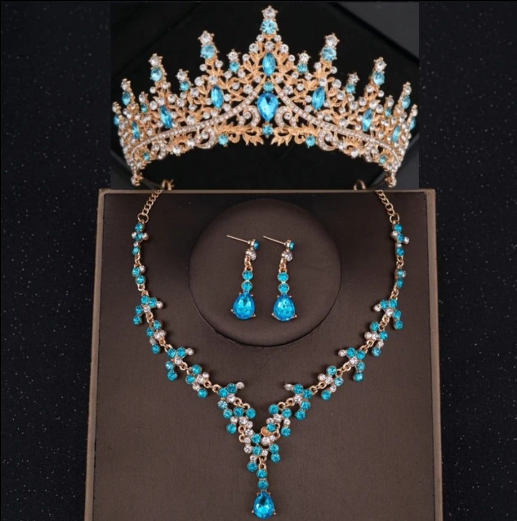 Joyería en aleación de zinc con diamantes de cristal azul cielo.