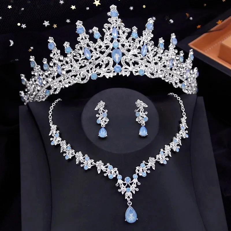 Joyería dorada en aleación de zinc con diamantes de cristal ópalo azul cielo.