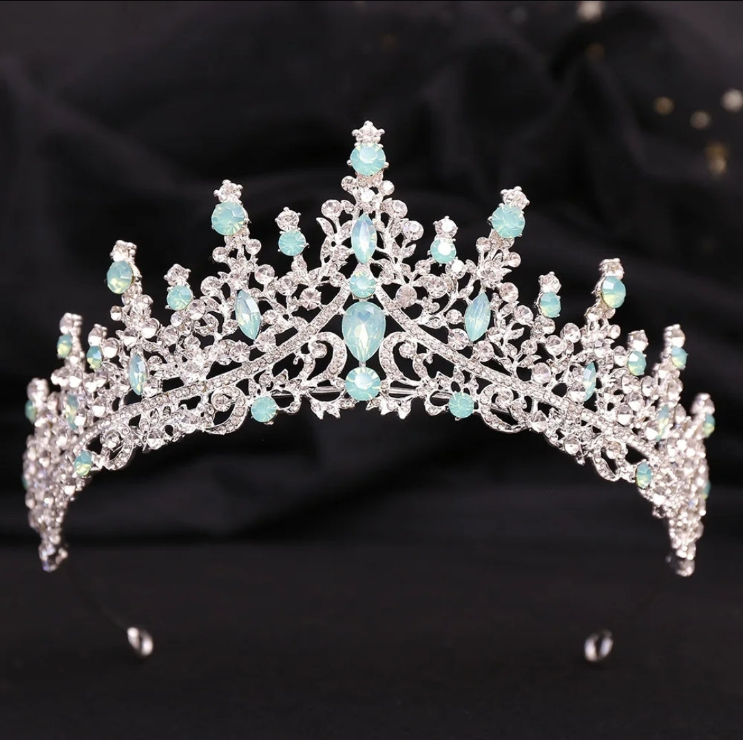 Tiara verde en aleación de zinc con diamantes de cristal.