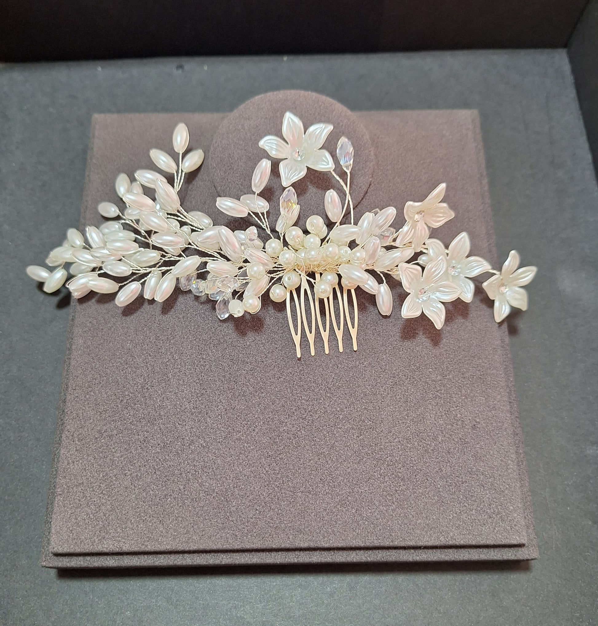 Peineta en aleación de zinc con diamantes y perlas de cristal.