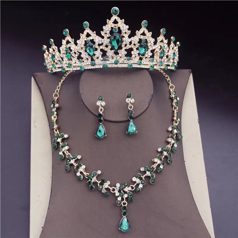 Conjunto en aleación de zinc con diamantes de cristal verdes.