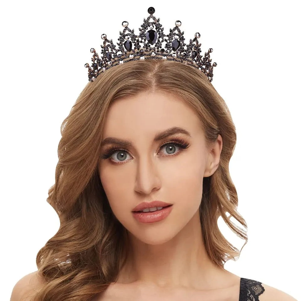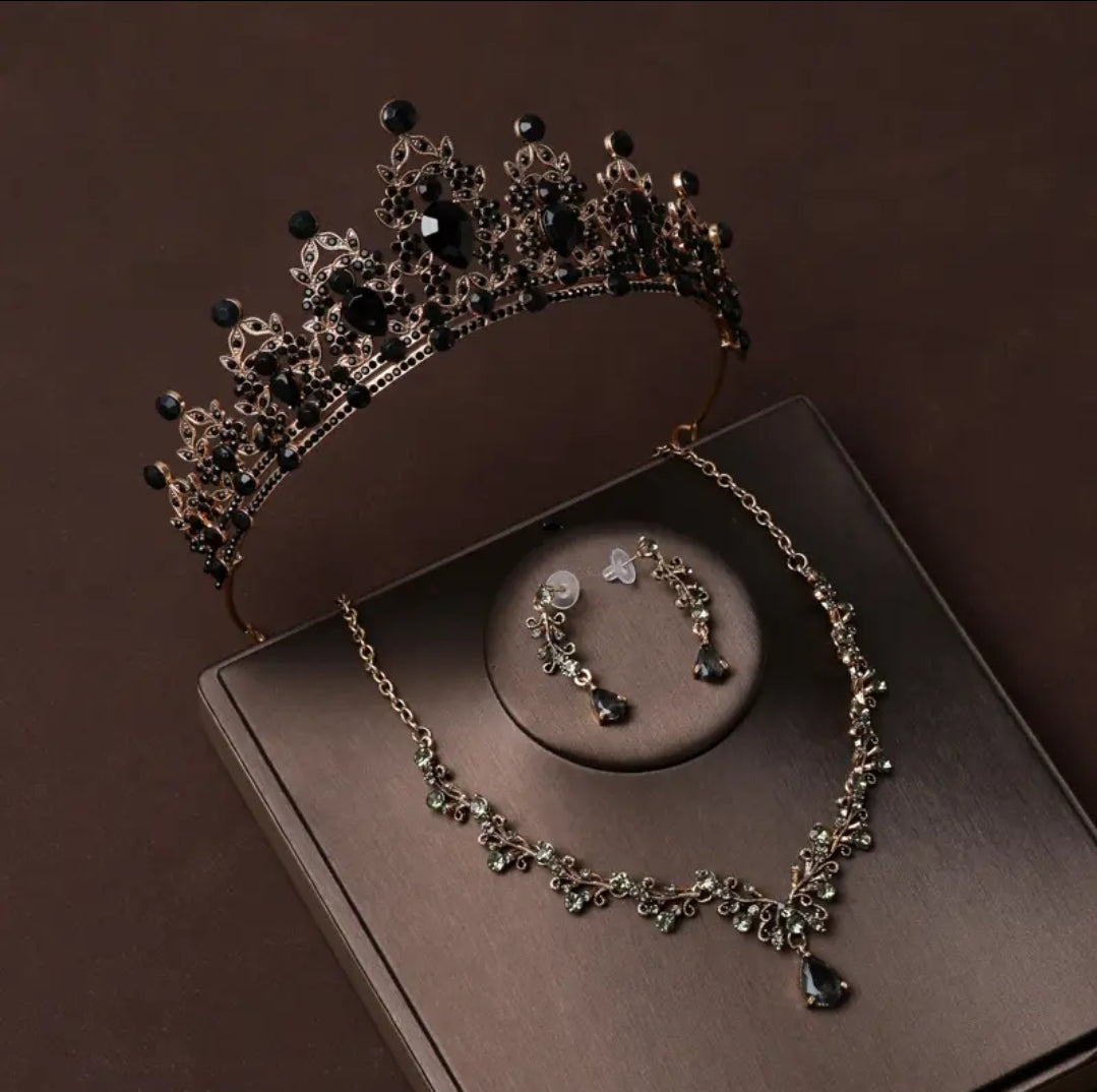 Conjunto dorado en aleación de zinc con diamantes de cristal negro.