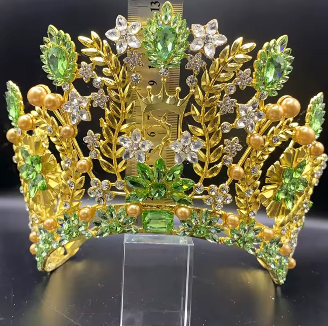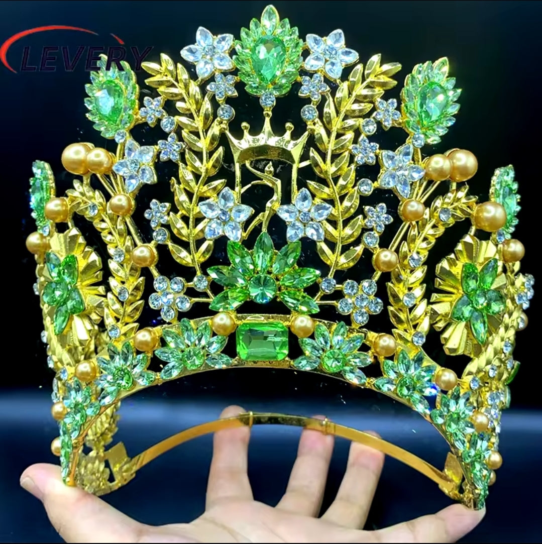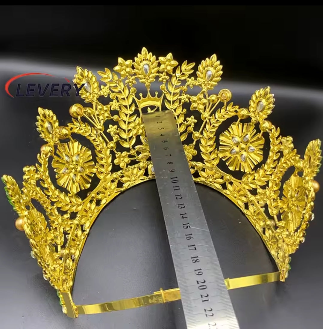 Corona de reinado es la fusión ideal de solidez y esplendor. Elaborada con aleación de zinc resistente para un soporte real y adornadas con diamantes de cristal que garantizan un brillo espectacular bajo cualquier luz.