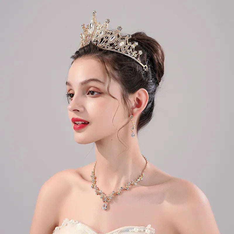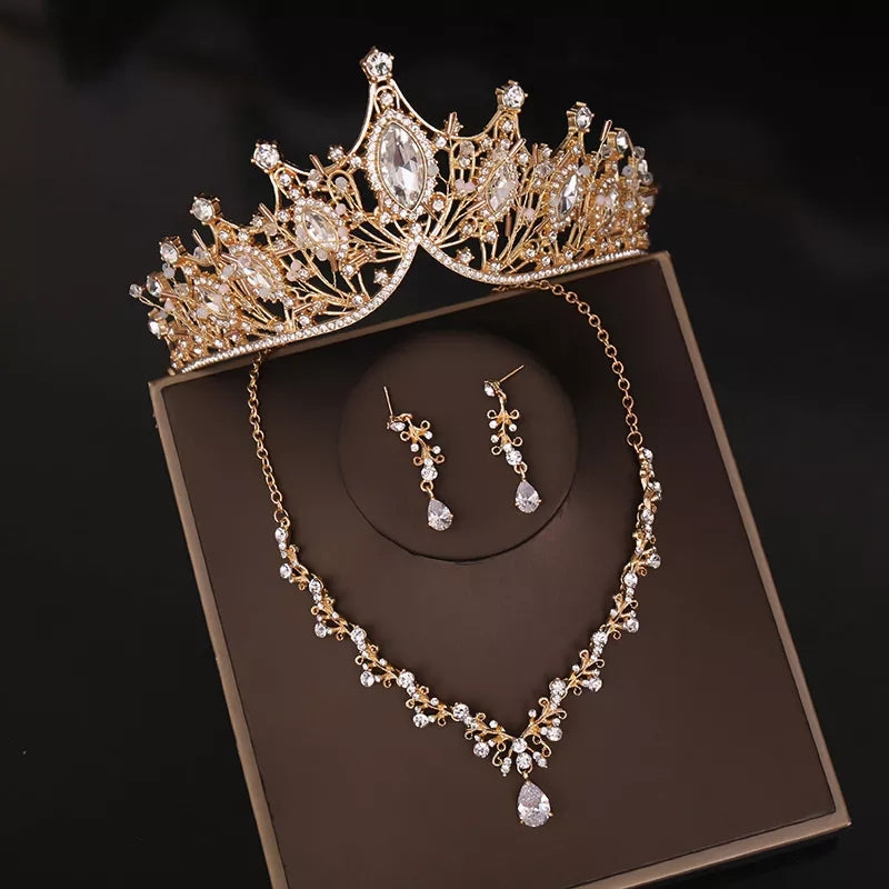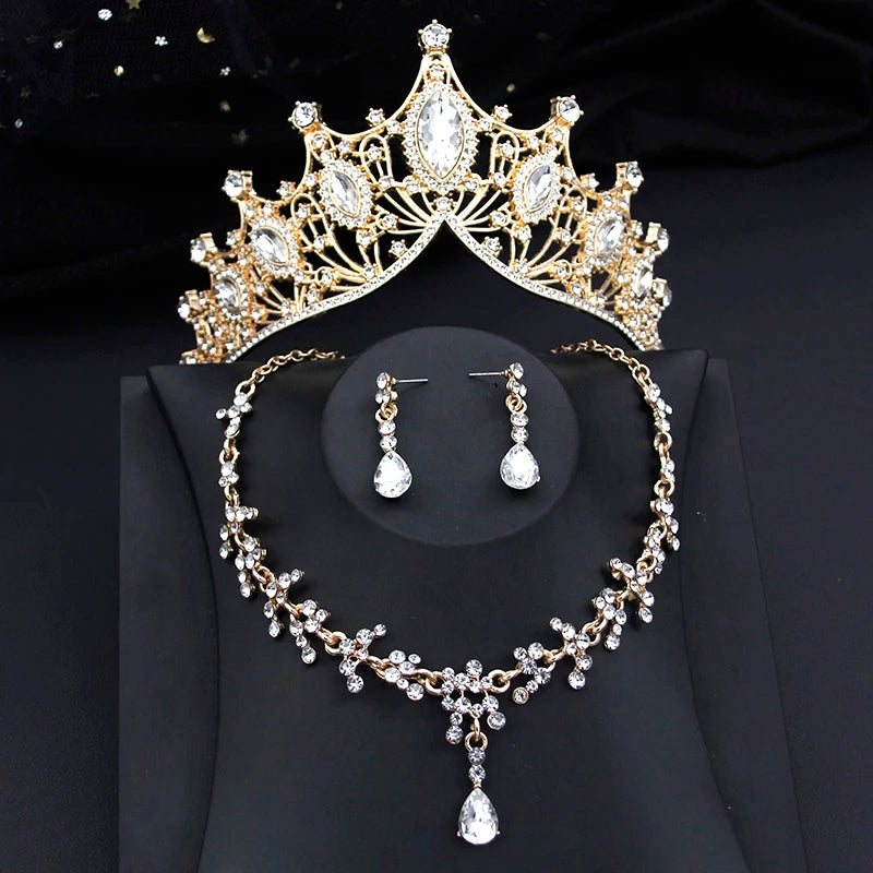 Joyería dorada en aleación de zinc con diamantes de cristal.