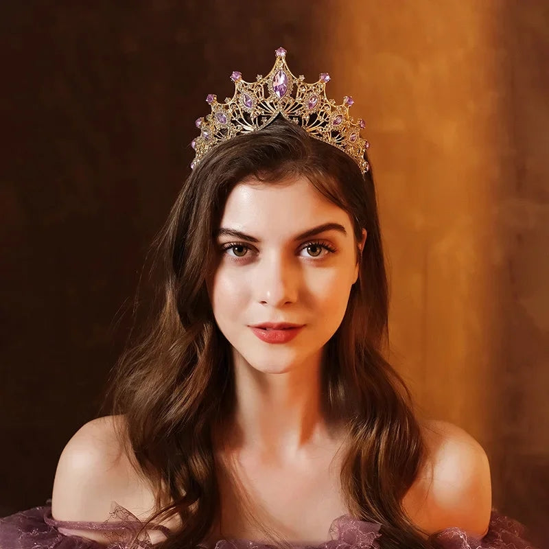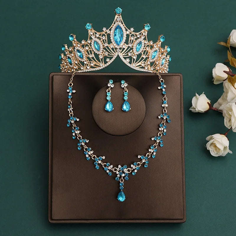 Joyería dorada en aleación de zinc con diamantes de cristal azul cielo.