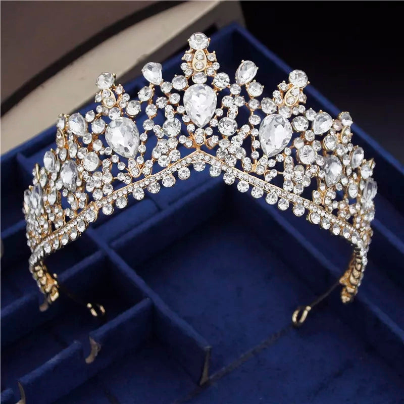 Tiara dorada en aleación de zinc con diamantes de cristal.