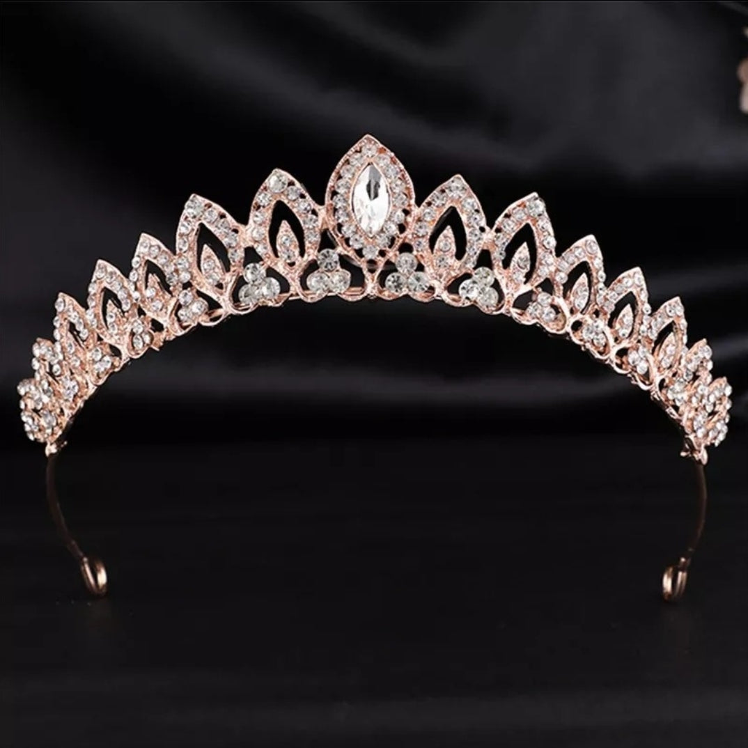 Tiara dorada en aleación de zinc con diamantes de cristal.