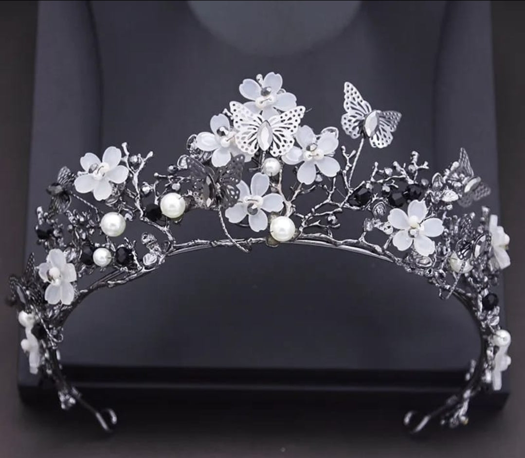 Tiara en aleación de zinc con diamantes de cristal negros.