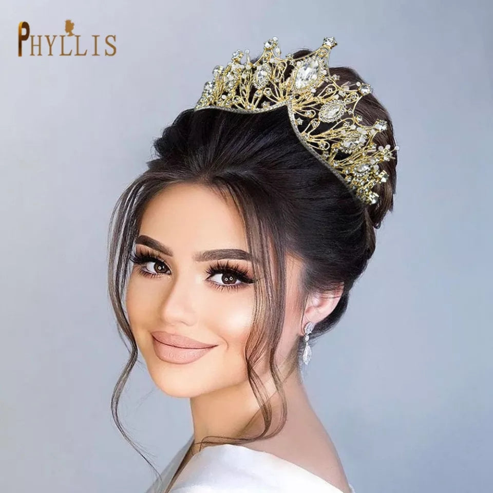 Tiara dorada en aleación de zinc con diamantes de cristal.