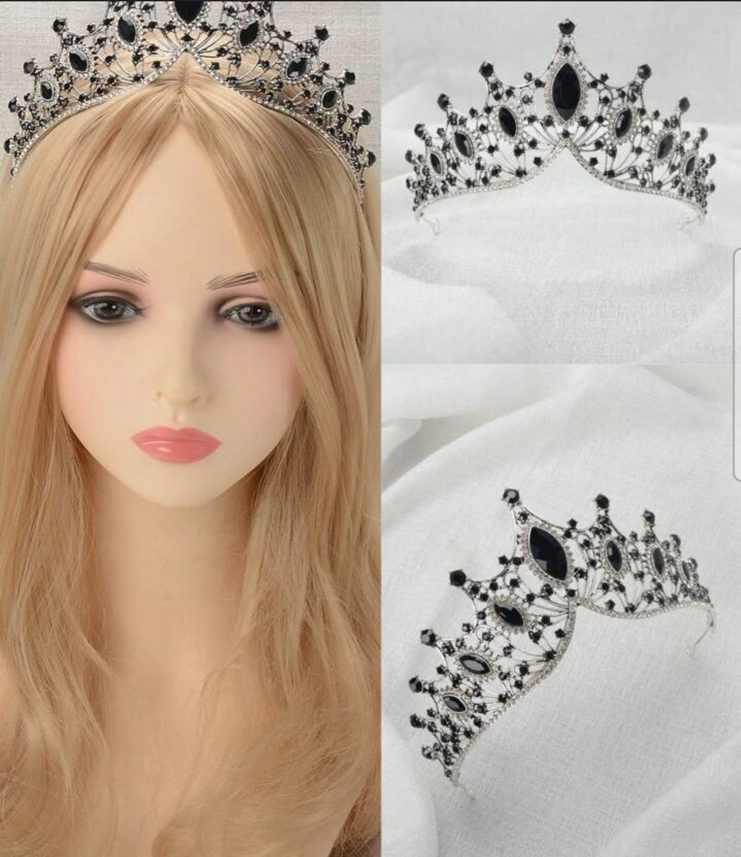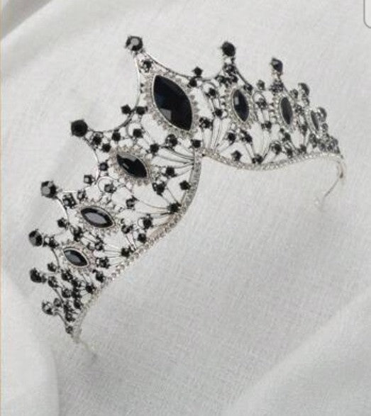Tiara en aleación de zinc con diamantes de cristal negro.