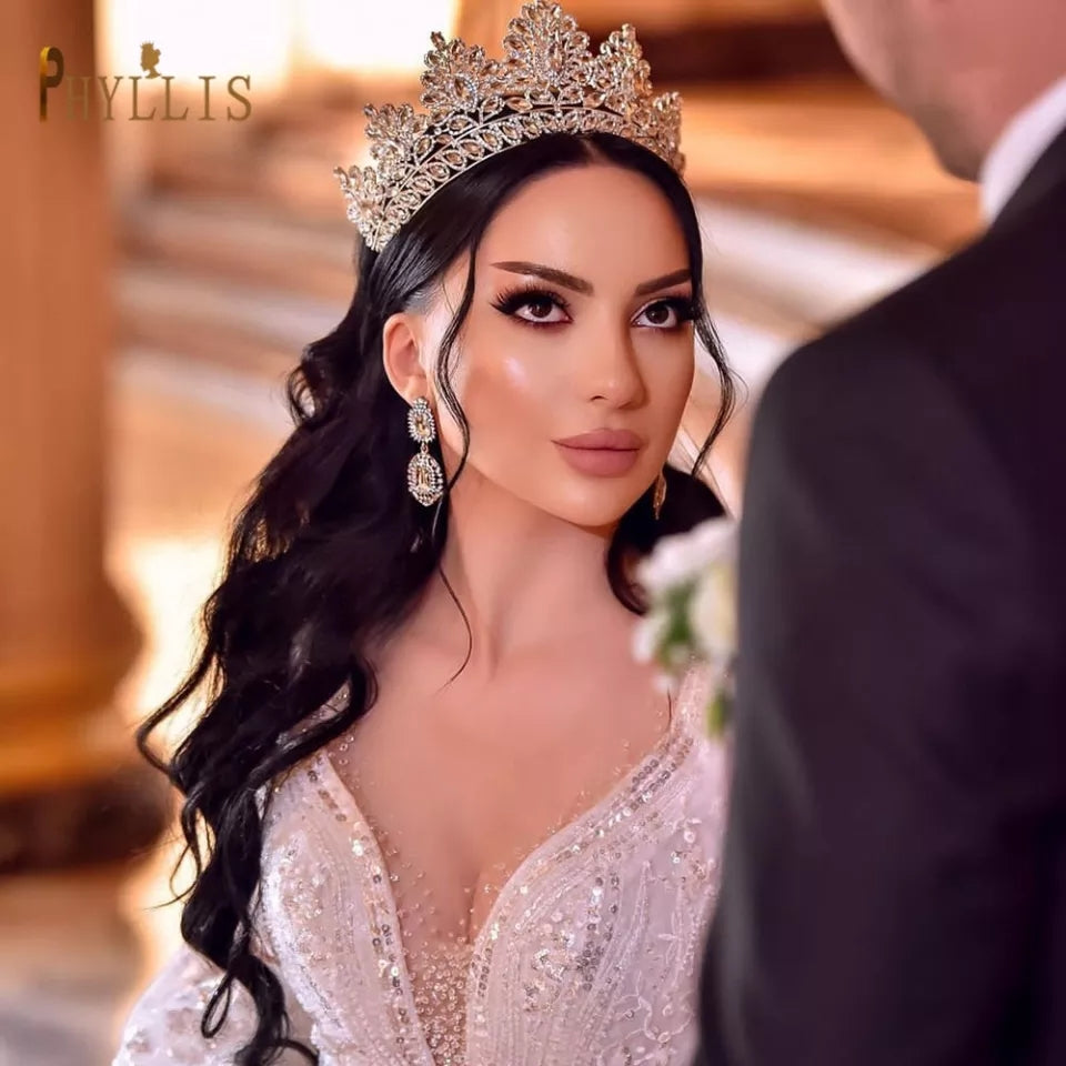 Tiara plateada de 8cm en aleación de zinc con diamantes de cristal.