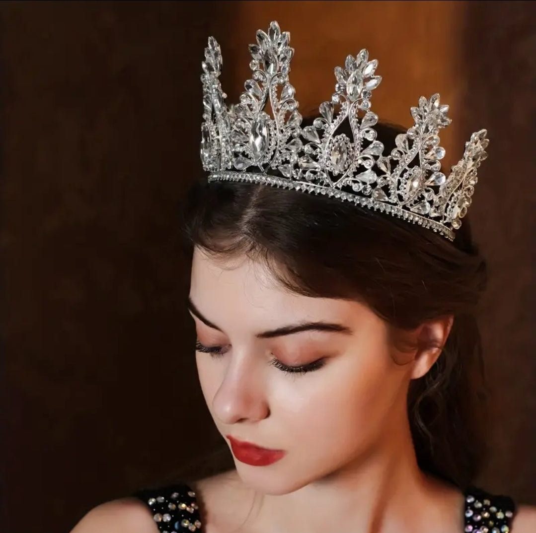 Descubre la alegría que te hará sentir espectacular. Nuestra colección de tiaras fusiona la durabilidad de la aleación de zinc con el resplandor de los auténticos diamantes de cristal . Esta combinación cuidadosamente seleccionada garantiza piezas resistentes, livianas y con un brillo deslumbrante que captura la luz a la perfección.