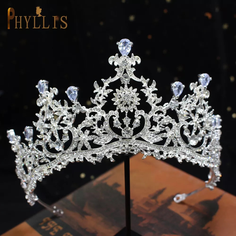Tiara plateada en aleación de zinc con diamantes de cristal.