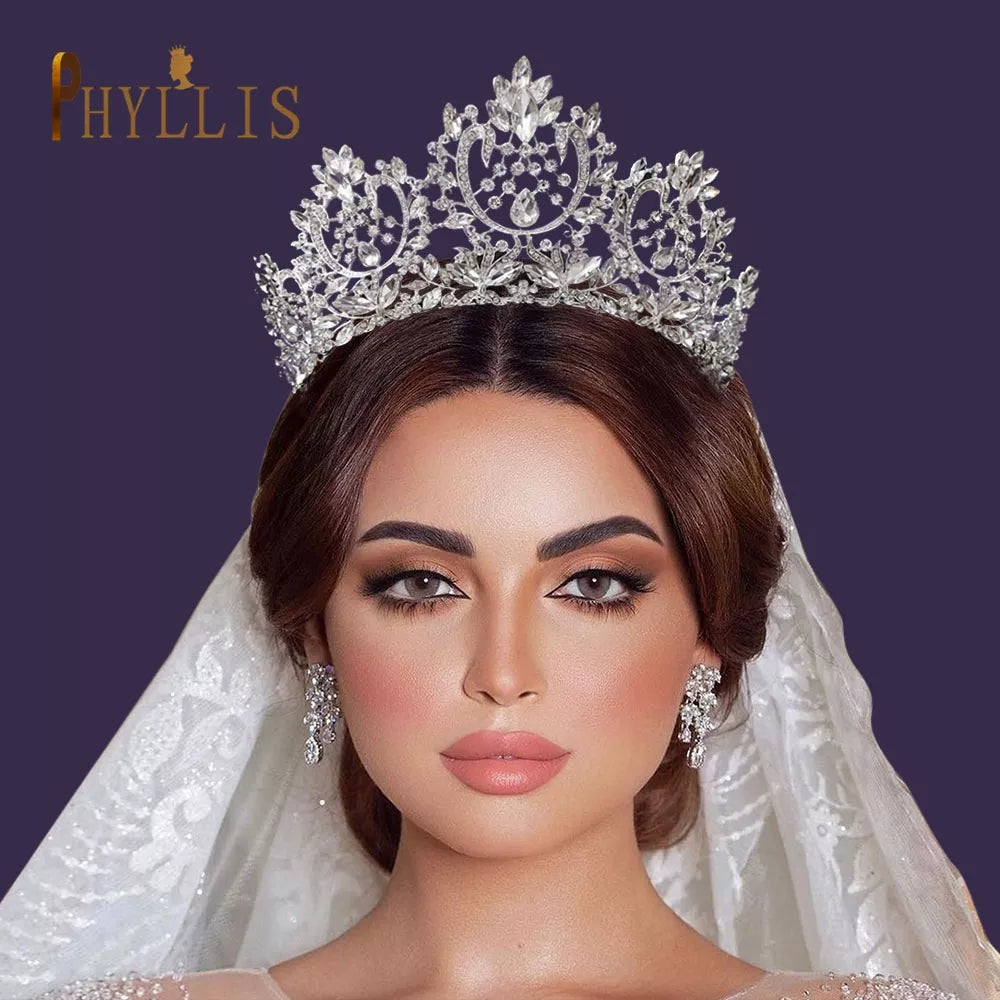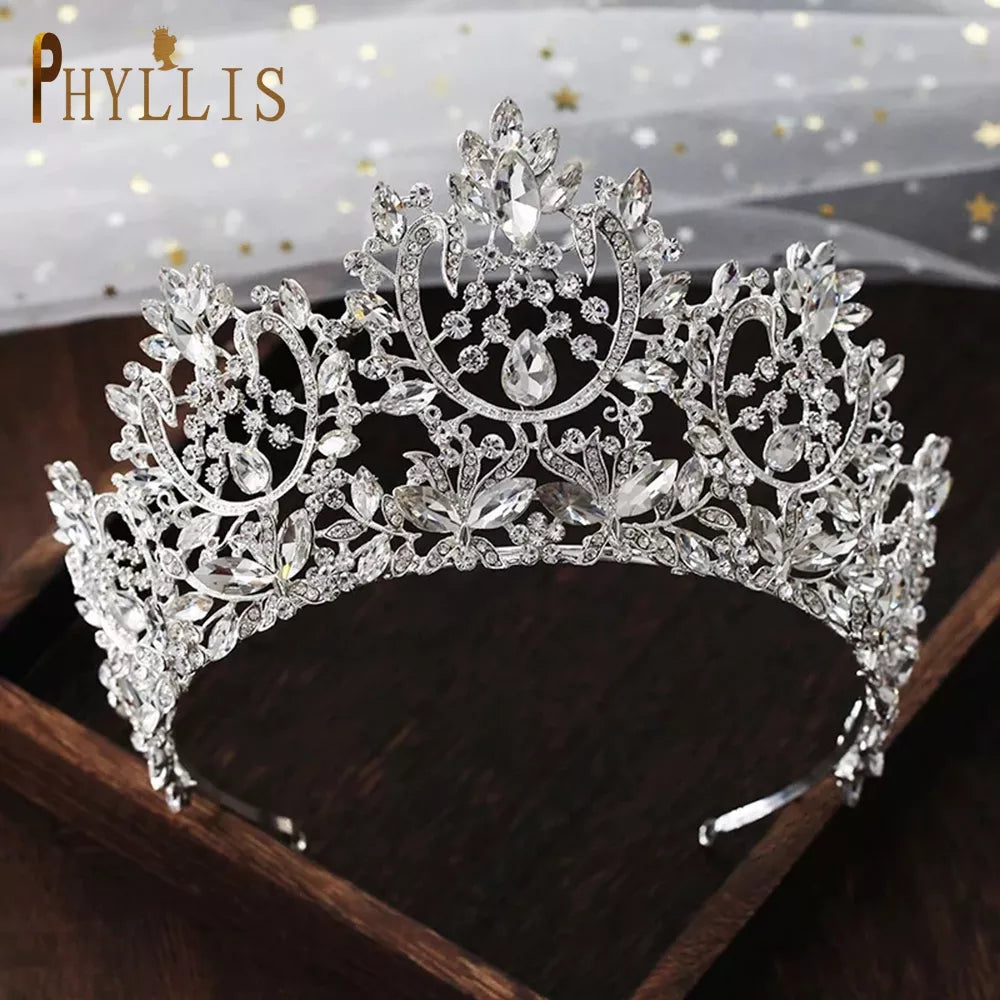 Tiara plateada de 9cm en aleación de zinc con diamantes de cristal.