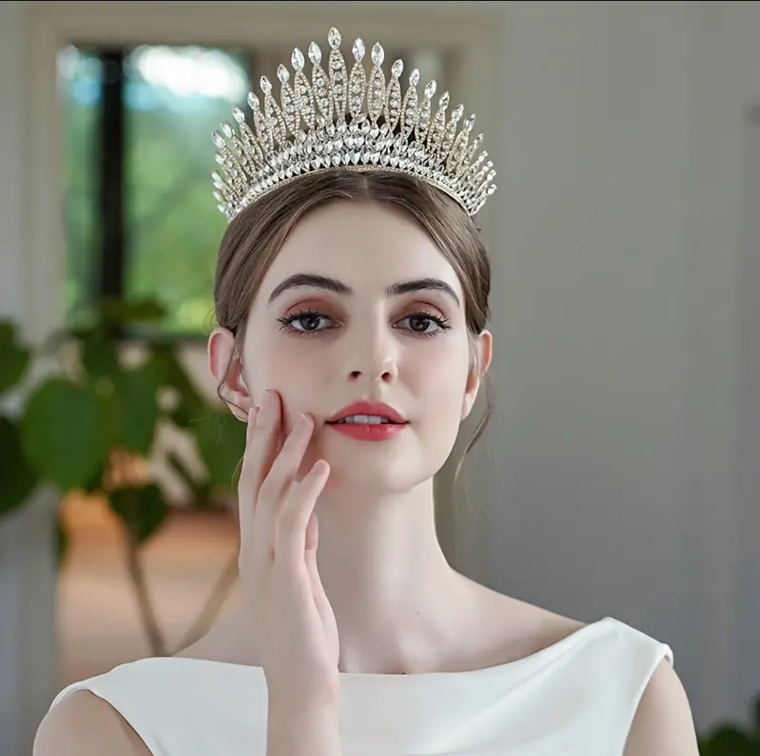Tiara plateada de 9cm en aleación de zinc con diamantes de cristal.