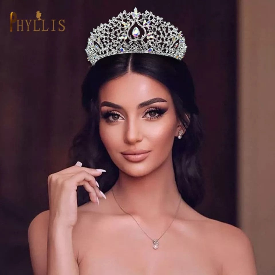 Tiara plateada de 8cm en aleación de zinc con diamantes de cristal tornasol.