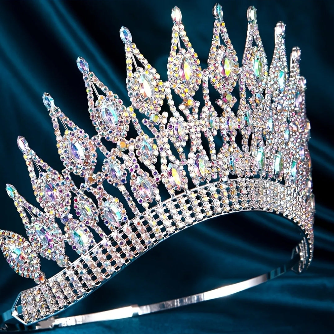 Corona de reinado es la fusión ideal de solidez y esplendor. Elaborada con aleación de zinc resistente para un soporte real y adornadas con diamantes de cristal que garantizan un brillo espectacular bajo cualquier luz.